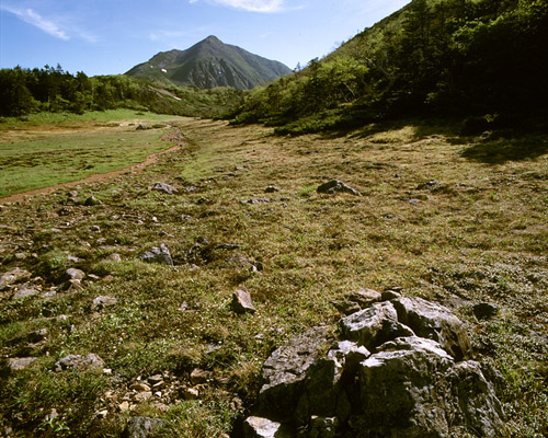 Mt. Kamigouchi (2803m) from grassy plain