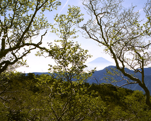Mt. Fuji through the birch, Fujimidaira point
