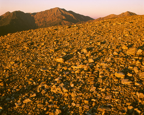Mt. Hijiri (3013m) setting sun hits, Mt. Izaruga (2540m)