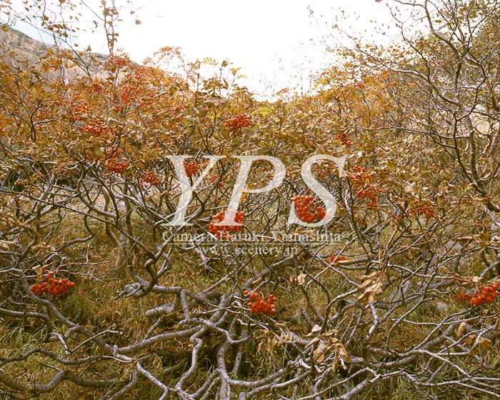 赤い実をつけたウラジロナナカマド。枝ぶりを思い切りアップで撮影したもの。