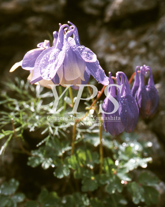[ ミヤマオダマキ ] 高山帯の沢の近くに生える。花の長さ4cmほど。