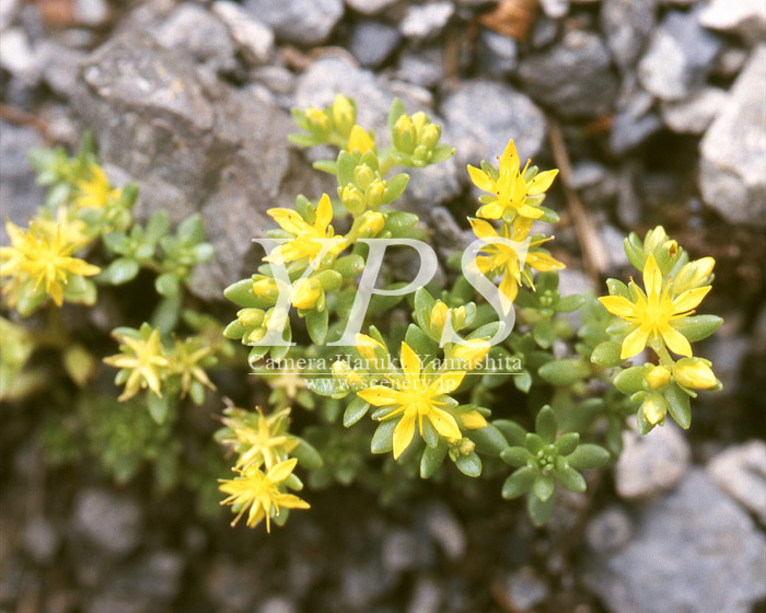 [ ミヤママンネングサ ] 高山帯の岩場に生える。高さ10cmほど。