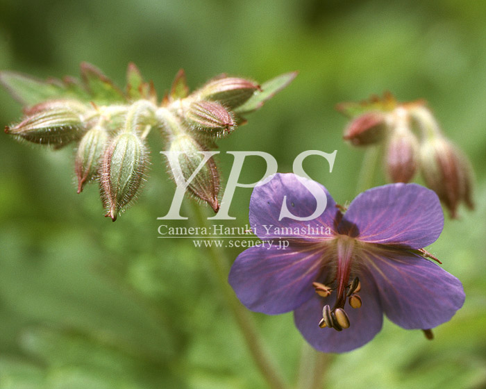 [ タカネグンナイフウロ ] 高山帯の雪渓跡地に生える。花の大きさ3cmほど。